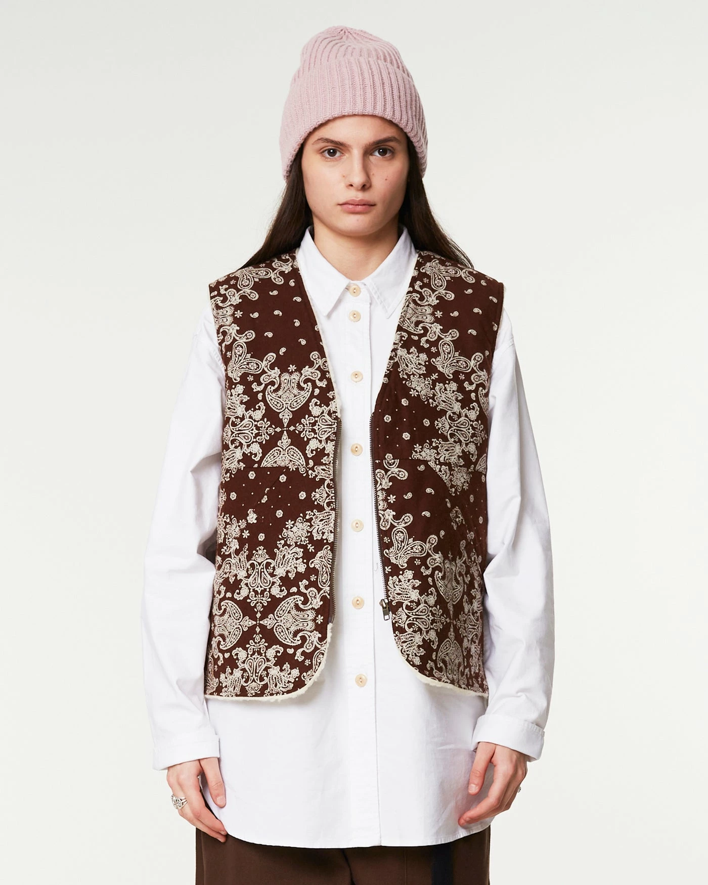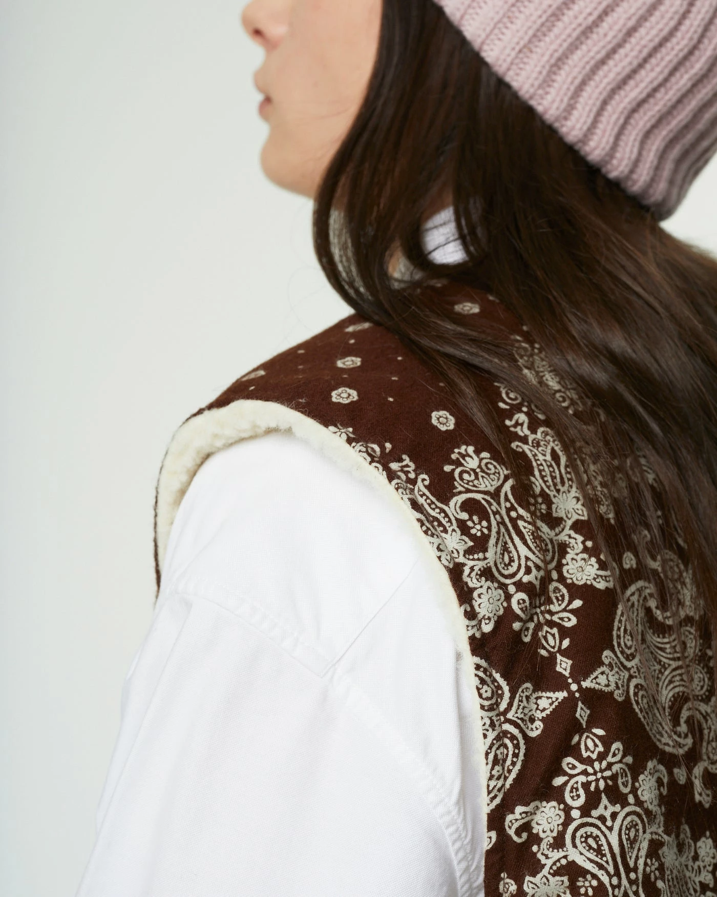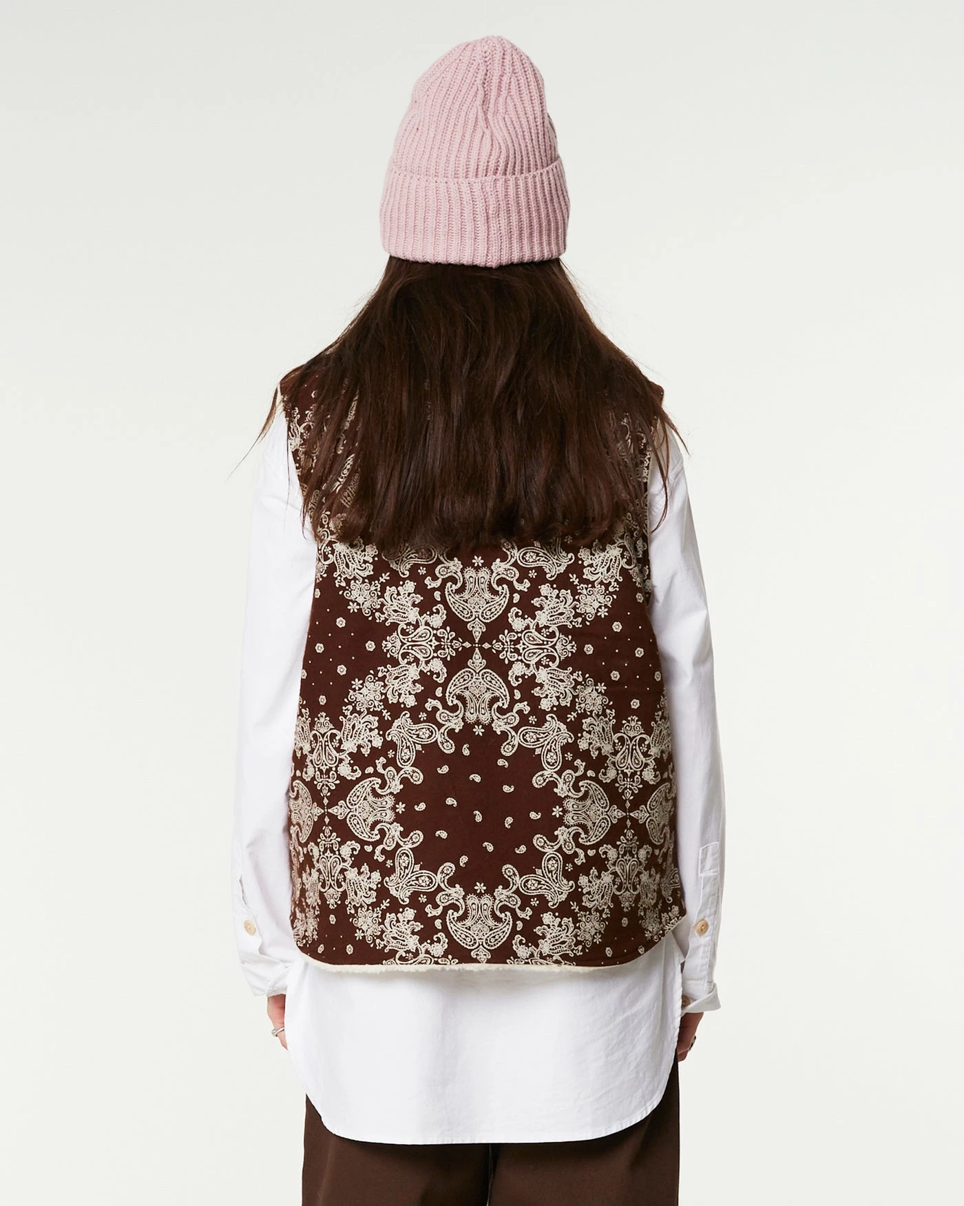 The perfect extra layer? You’ve found it. This reversible sleeveless vest was designed to fit perfectly in all types of outfits. As an extra layer underneath your winter attire, or on top of whatever you can think of. Exclusive Japanese velvet bandana on one side, off white faux fur on the other!