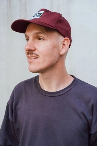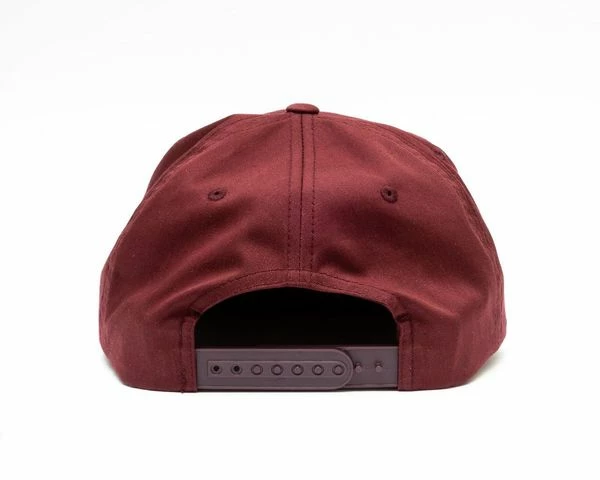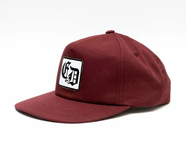 Lightweight classic snapback in cherry red, with a crushable unstructured upper and vintage gas station type of vibe. Features the ED673 logo as a front patch.